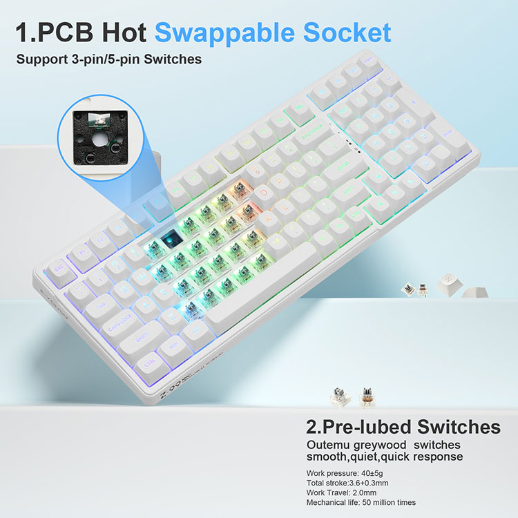 HUO JI คือผู้ผลิตและผู้จัดจำหน่ายคีย์บอร์ดเกมแบบกำหนดเองแบบมีสาย 99 คีย์ในประเทศจีนที่สามารถขายส่งอุปกรณ์เสริมต่อพ่วงคอมพิวเตอร์ เราสามารถให้บริการระดับมืออาชีพและราคาที่ดีกว่าสำหรับคุณ