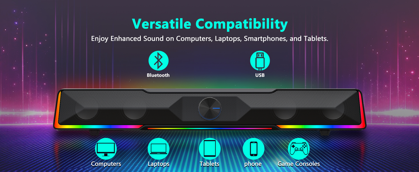การเชื่อมต่อ Bluetooth ช่วยให้สามารถจับคู่แบบไร้สายกับอุปกรณ์เคลื่อนที่ได้ ในขณะที่การเชื่อมต่อ USB ช่วยให้มั่นใจได้ว่าการเล่นเสียงสำหรับคอมพิวเตอร์มีความเสถียร