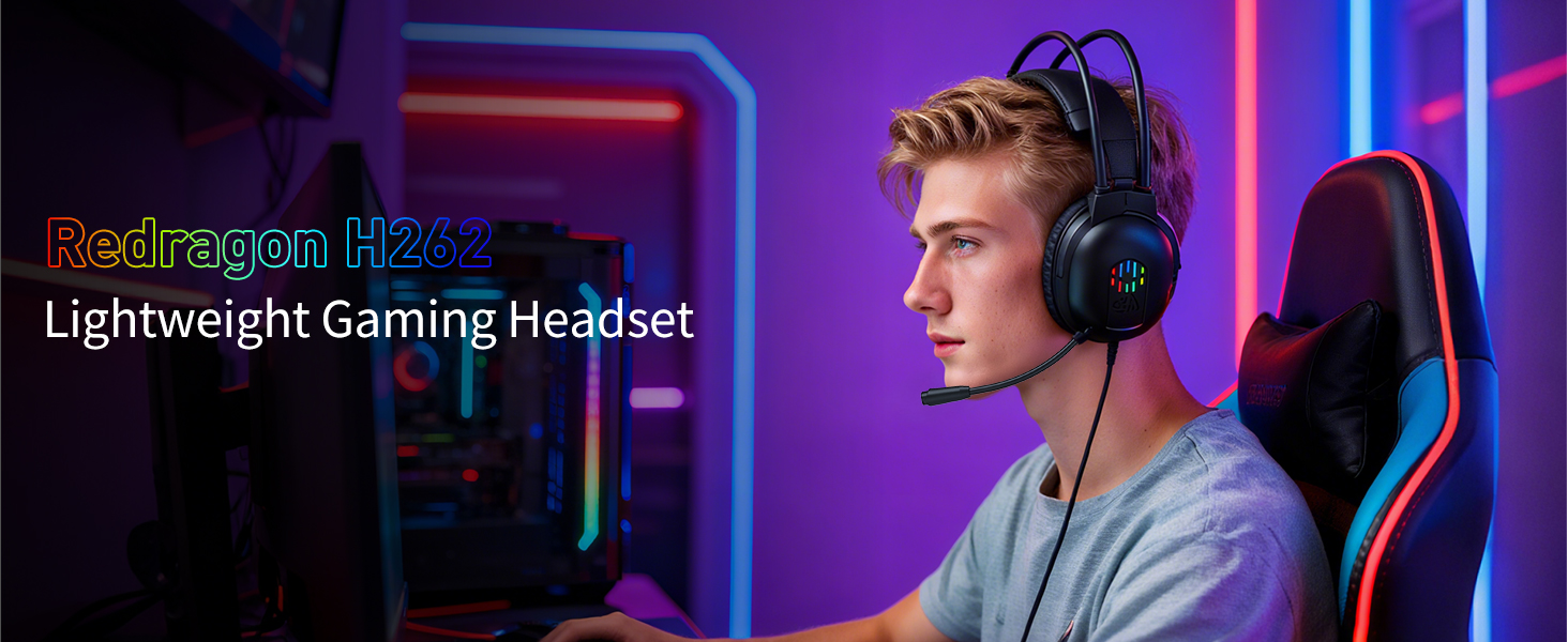 เซสชันการเล่นเกมมักใช้เวลานานหลายชั่วโมง ชุดหูฟังสำหรับเล่นเกมแบบมีสายสีดำ H262 พร้อมไมโครโฟนได้รับการออกแบบให้มีฟองน้ำรองหูฟังที่อ่อนนุ่มและแถบคาดศีรษะแบบปรับได้เพื่อให้ความสบายที่ยาวนาน
