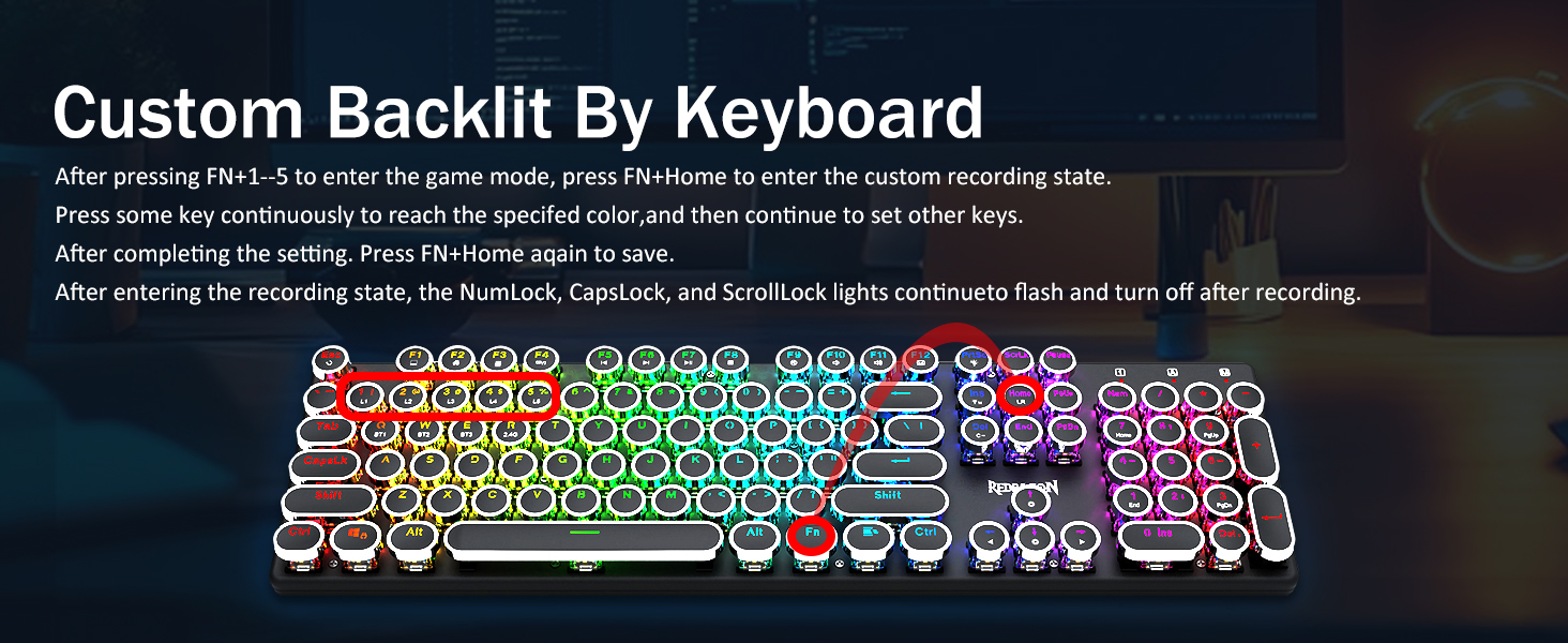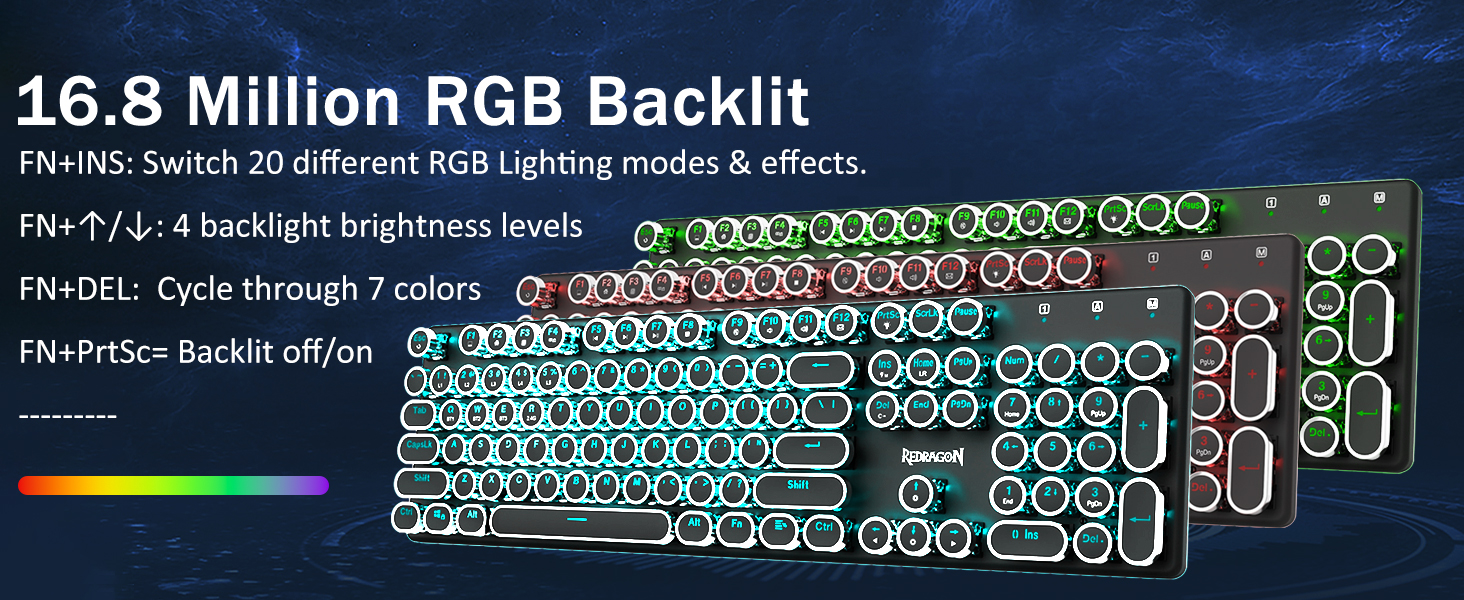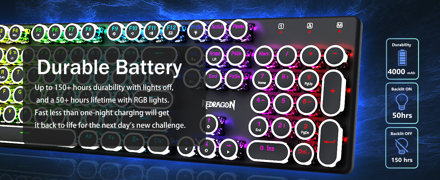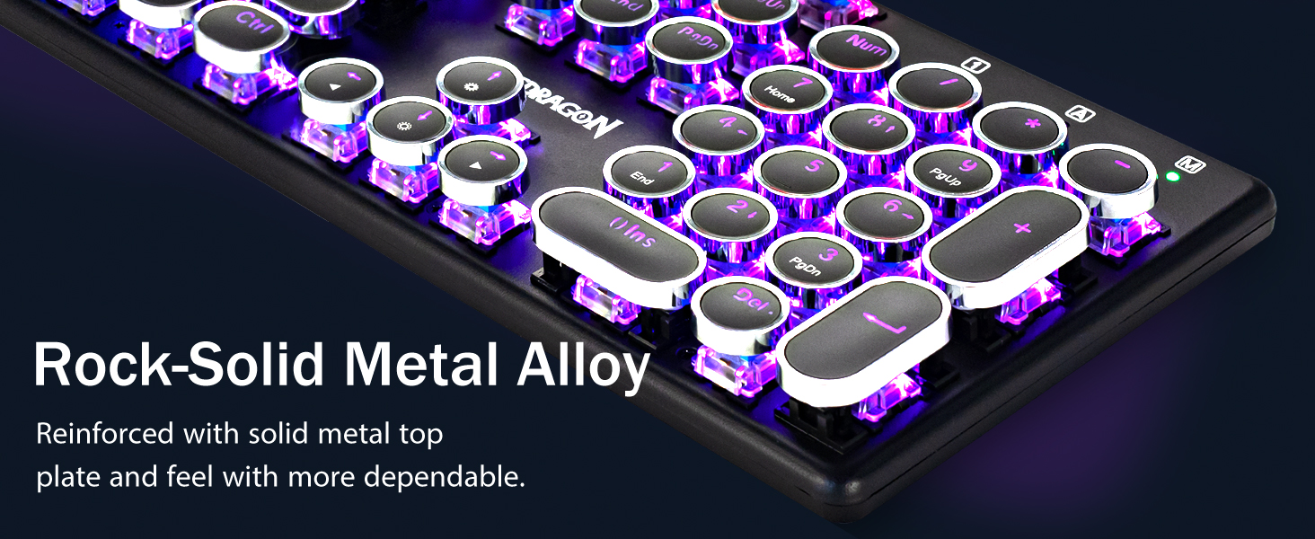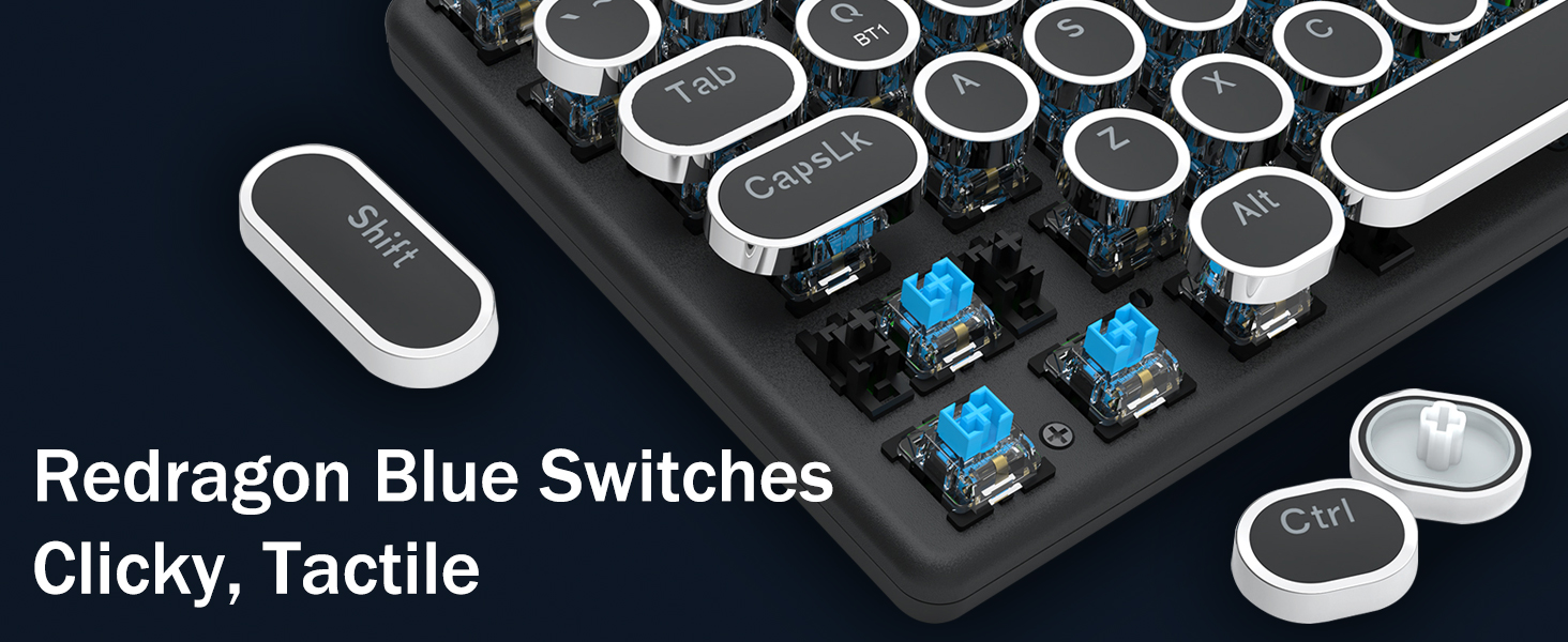 บัญชีผู้ใช้นี้เป็นส่วนตัวสวิตช์สีน้ำเงินของ Redragon Mechanical ให้ความต้านทานปานกลาง เสียงคลิกและเสียงตอบรับที่สัมผัสได้ ให้สภาพแวดล้อมและประสิทธิภาพในการเล่นเกมที่ตอบสนองและแม่นยำ ปุ่มกดแบบกลมของคีย์บอร์ด Steampunk สไตล์วินเทจดูเหมือนเครื่องพิมพ์ดีดคลาสสิก ให้ความรู้สึกในการพิมพ์ที่สะดวกสบายและการคลิกสัมผัสที่เสถียร