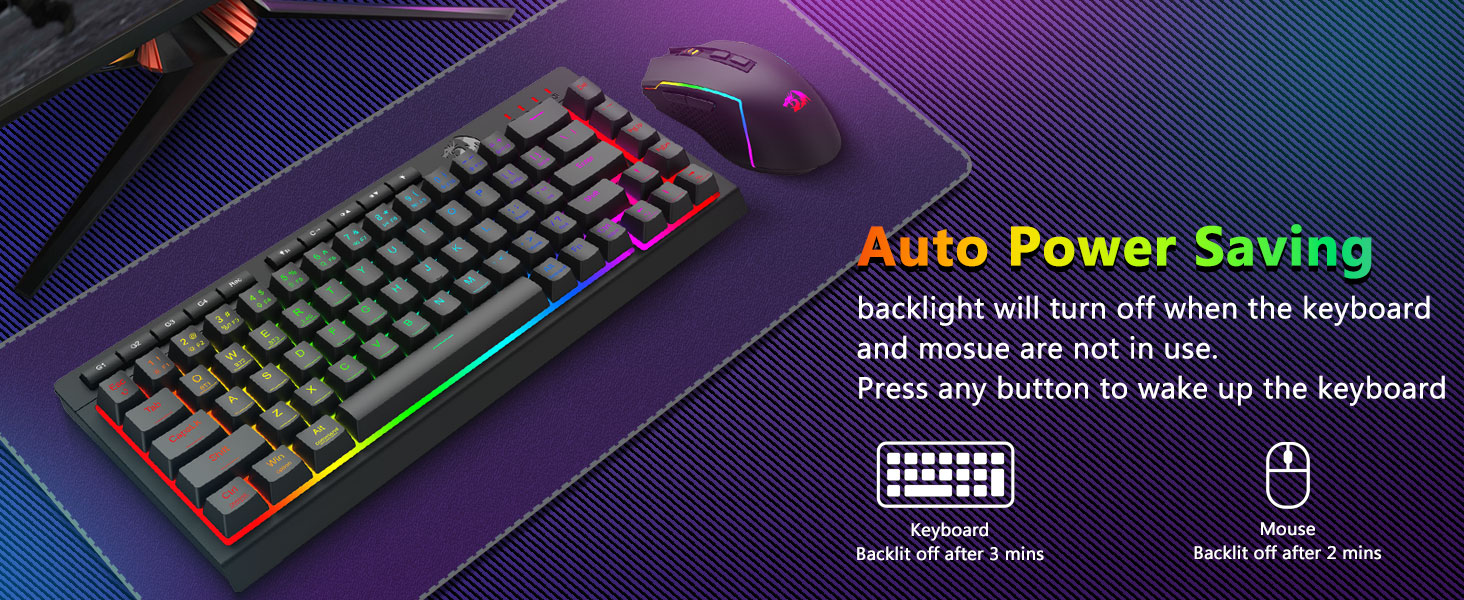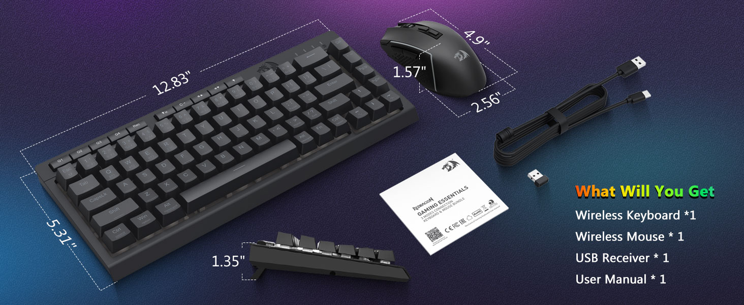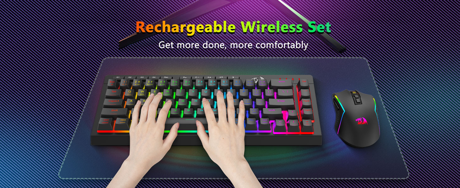 ชุดคีย์บอร์ดและเมาส์เล่นเกมไร้สาย S157 สีดำจาก Redragon สร้างสรรค์อย่างเชี่ยวชาญโดยผู้ผลิตมืออาชีพ Chuangquan ได้รับการออกแบบมาเพื่อยกระดับสถานีเกมของคุณทั้งในด้านประสิทธิภาพและสไตล์ คีย์บอร์ดให้การตอบสนองการสัมผัสที่น่าพึงพอใจ เหมาะอย่างยิ่งสำหรับการเล่นเกมแบบมาราธอนที่เข้มข้นและการพิมพ์ที่ยาวนาน ในขณะที่เมาส์รับประกันความแม่นยำของตำแหน่งด้วยการตั้งค่า DPI ที่ปรับได้เพื่อการควบคุมในเกมที่เหนือกว่า ส่วนประกอบทั้งสองมีไฟแบ็คไลท์ RGB ที่สวยงาม ช่วยให้คุณปรับแต่งบรรยากาศการตั้งค่าของคุณด้วยสเปกตรัมสีและเอฟเฟกต์ไดนามิก