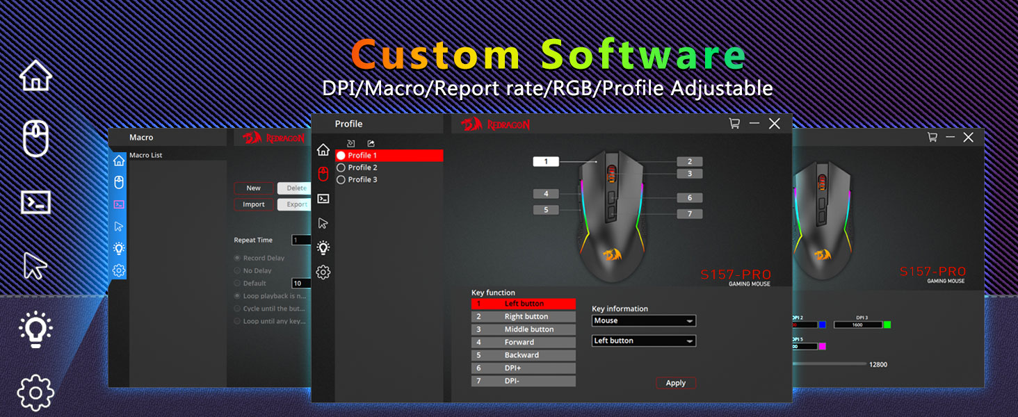 ปรับได้สูงสุด 12800 DPI- มีระดับ DPI ออนบอร์ด 5 ระดับซึ่งช่วยให้สามารถบันทึกการเคลื่อนไหวของเมาส์ไปยังตำแหน่งระบุแต่ละตำแหน่งได้ 5 ระดับ DPI นั้นฟรีสำหรับ DIY ด้วยซอฟต์แวร์ ช่วยให้เกมเมอร์สามารถสลับในเกมได้อย่างรวดเร็ว
