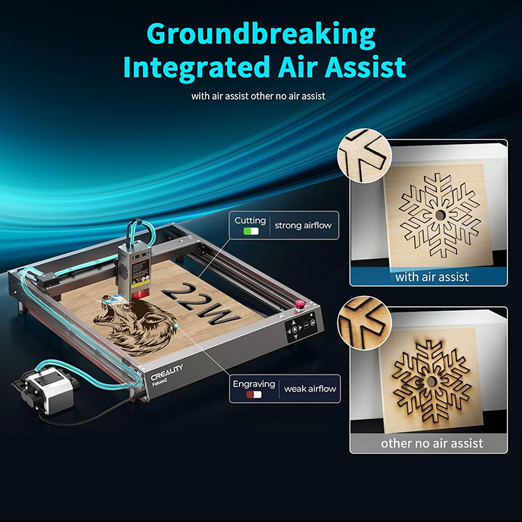 · Airs Assist Integrated Integrated:ปรับเครื่องช่วยอากาศด้วยตนเองผ่านลูกบิดหรือสามารถปรับการไหลเวียนของอากาศผ่านไลท์เบิร์นโดยอัตโนมัติเพื่อกำจัดควันและป้องกันเลนส์เลเซอร์ทำให้เกิดผลลัพธ์ที่สะอาดขึ้น