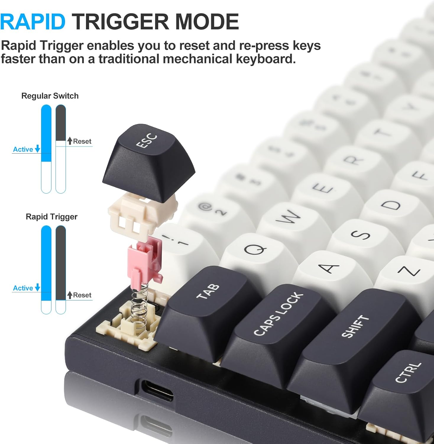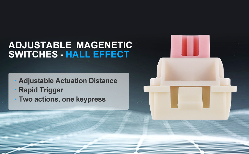 สวิตช์แม่เหล็กใช้เซ็นเซอร์เอฟเฟกต์ Hall เพื่อตรวจจับการเคลื่อนไหวของปุ่ม โดยให้จุดสั่งการที่ปรับได้และการจดจำอินพุตที่สม่ำเสมอ เทคโนโลยีนี้แตกต่างจากสวิตช์เชิงกลแบบดั้งเดิมตรงที่ช่วยลดการสึกหรอทางกายภาพและรับประกันความเสถียรในระยะยาว