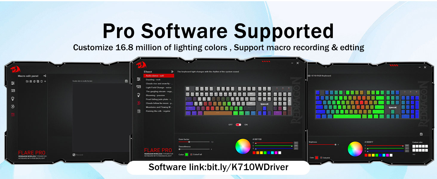 บัญชีผู้ใช้นี้เป็นส่วนตัว- ขยายตัวเลือกของคุณโดยใช้ซอฟต์แวร์ที่มีอยู่เพื่อออกแบบโหมดและเอฟเฟกต์ใหม่ของคุณเอง มาโครที่มีปุ่มลัดหรือปุ่มลัดที่แตกต่างกันเพื่อการทำงานและการเล่นเกมที่มีประสิทธิภาพยิ่งขึ้น ลิงค์ซอฟต์แวร์: bit.ly/K710WDriver